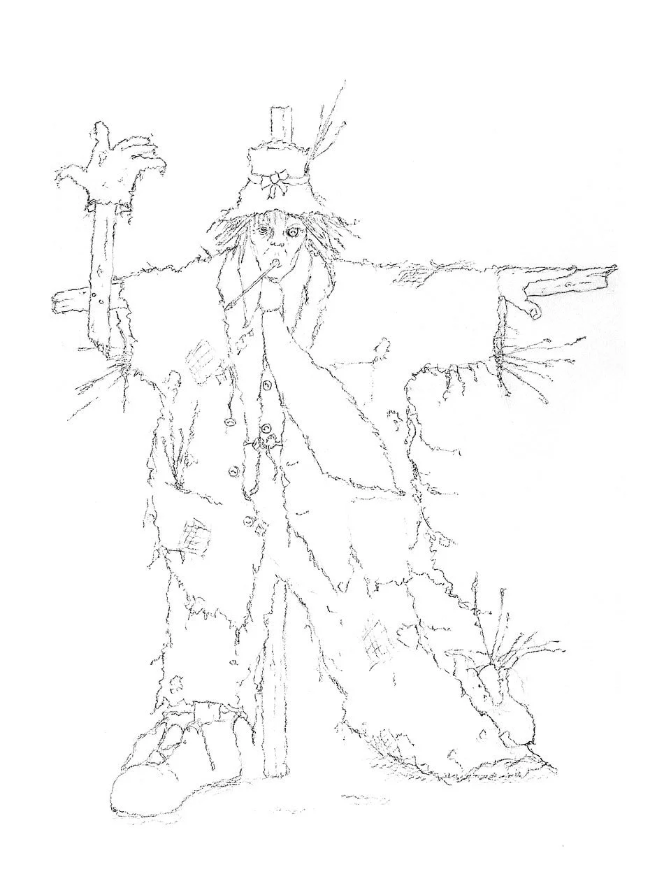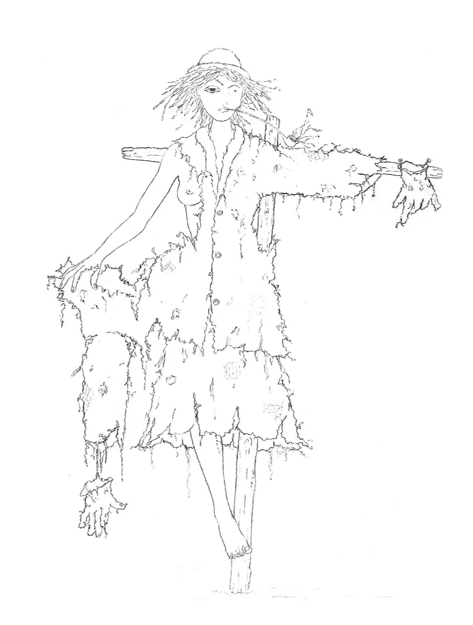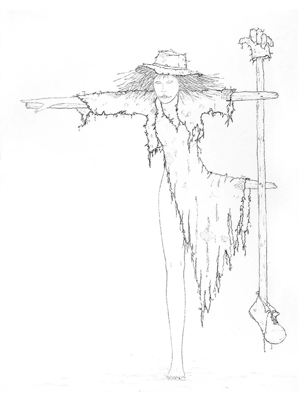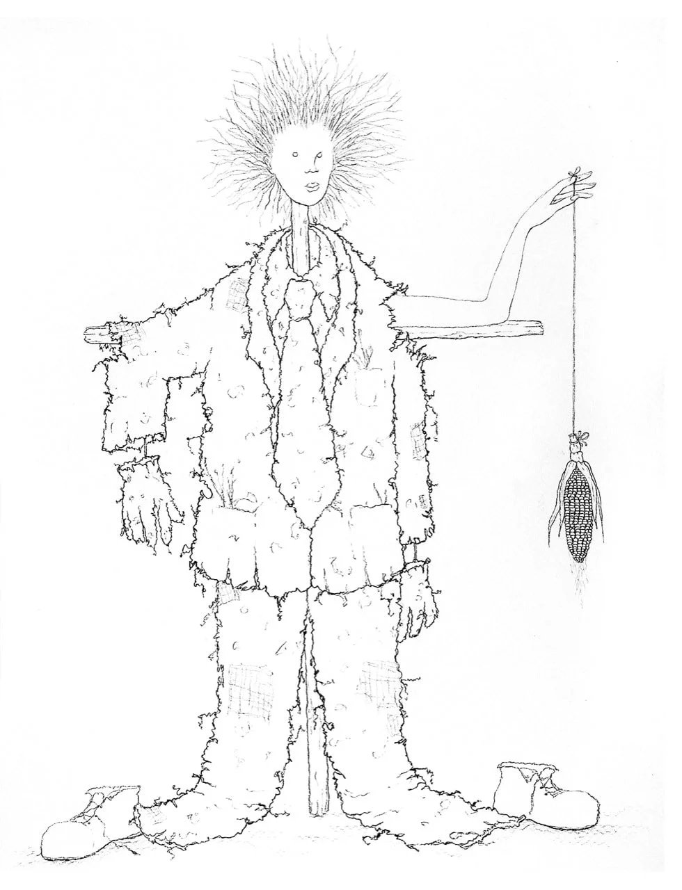 From the Corvus Rex Series, the charcoal pencil drawings of hybrid half-human, half-scarecrow figures.