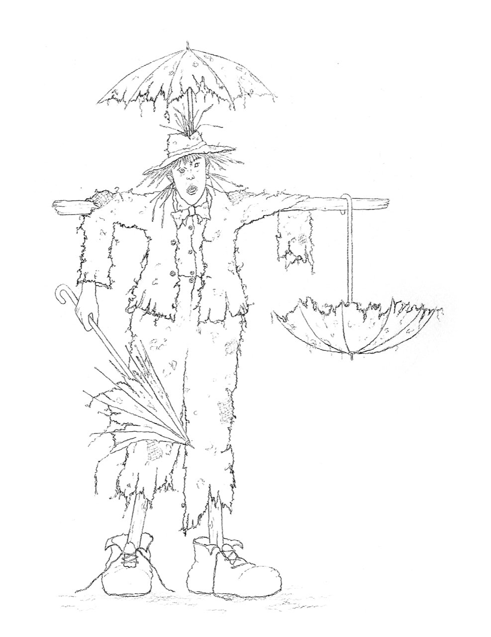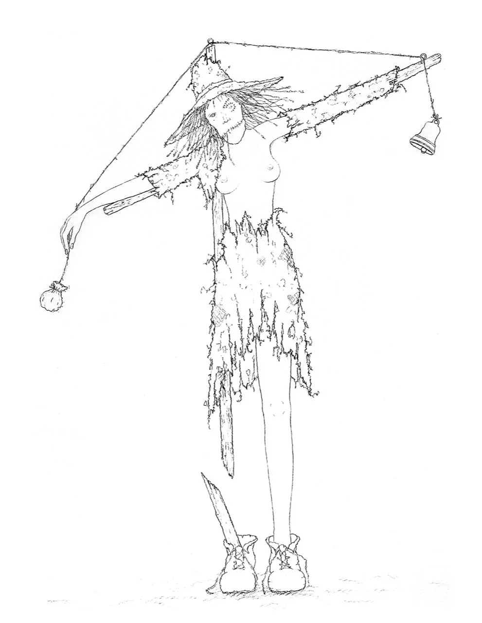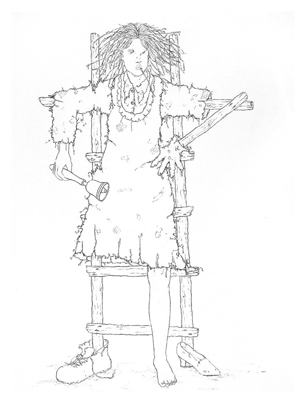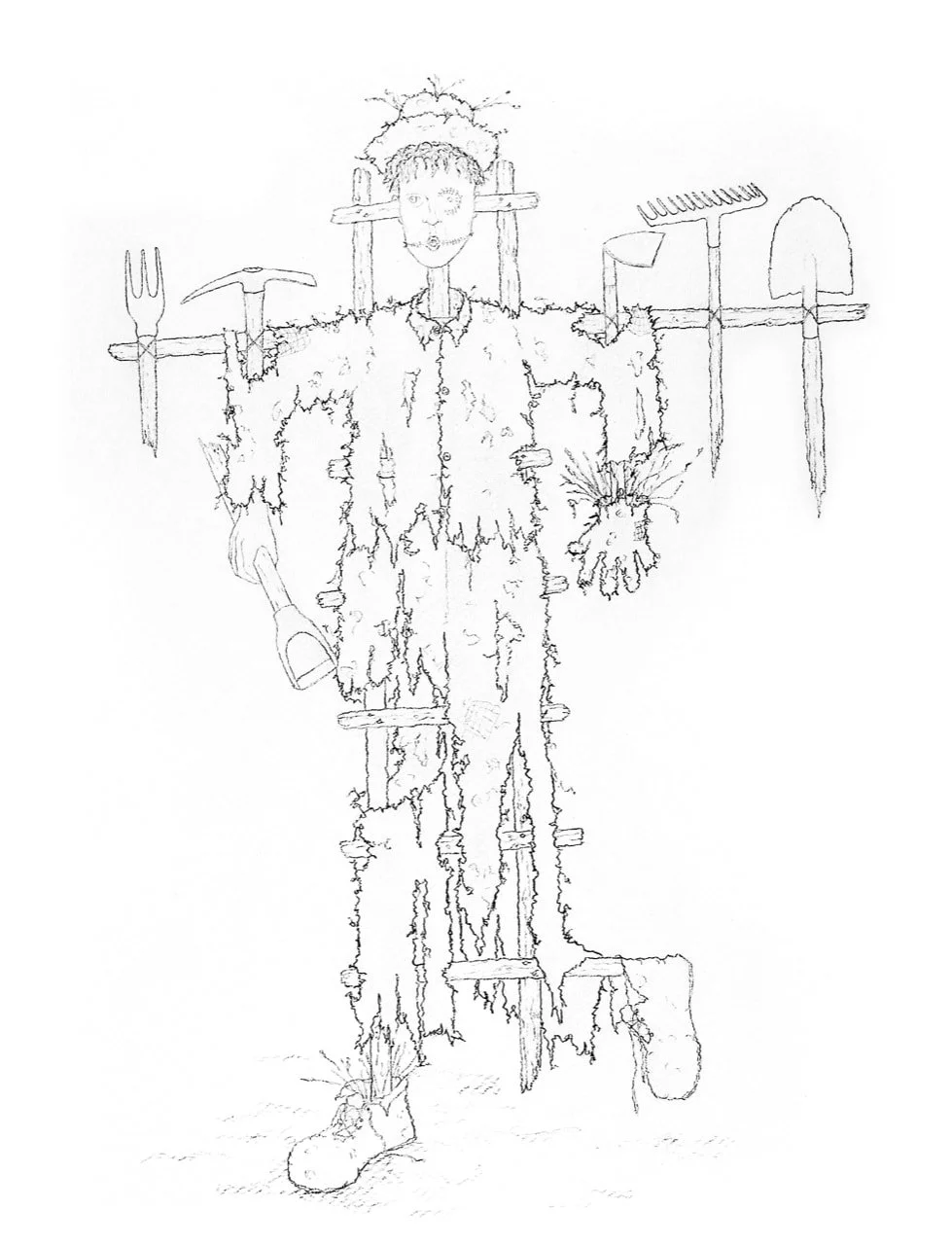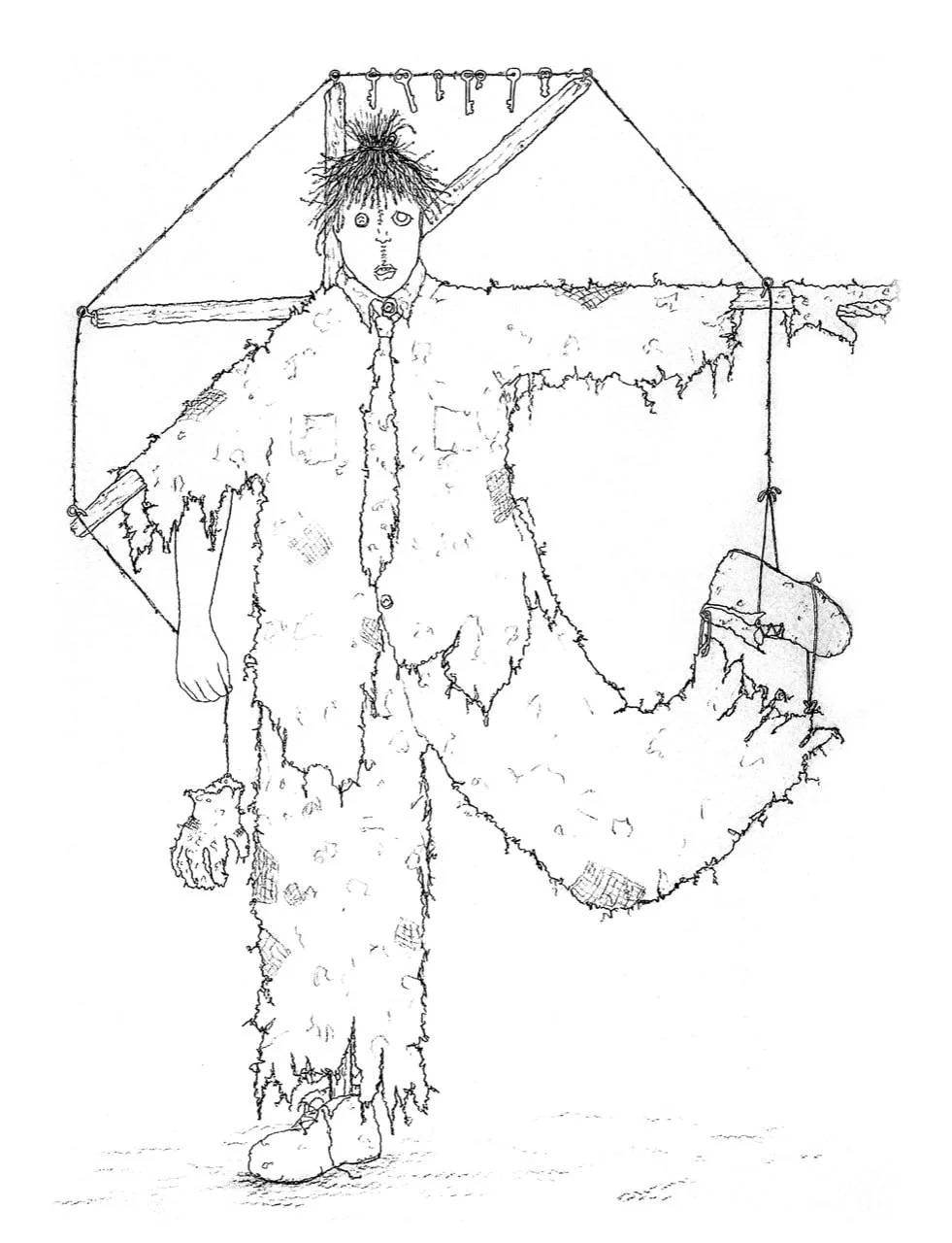 From the Corvus Rex Series, the charcoal pencil drawings of hybrid half-human, half-scarecrow figures.